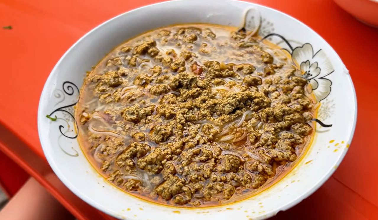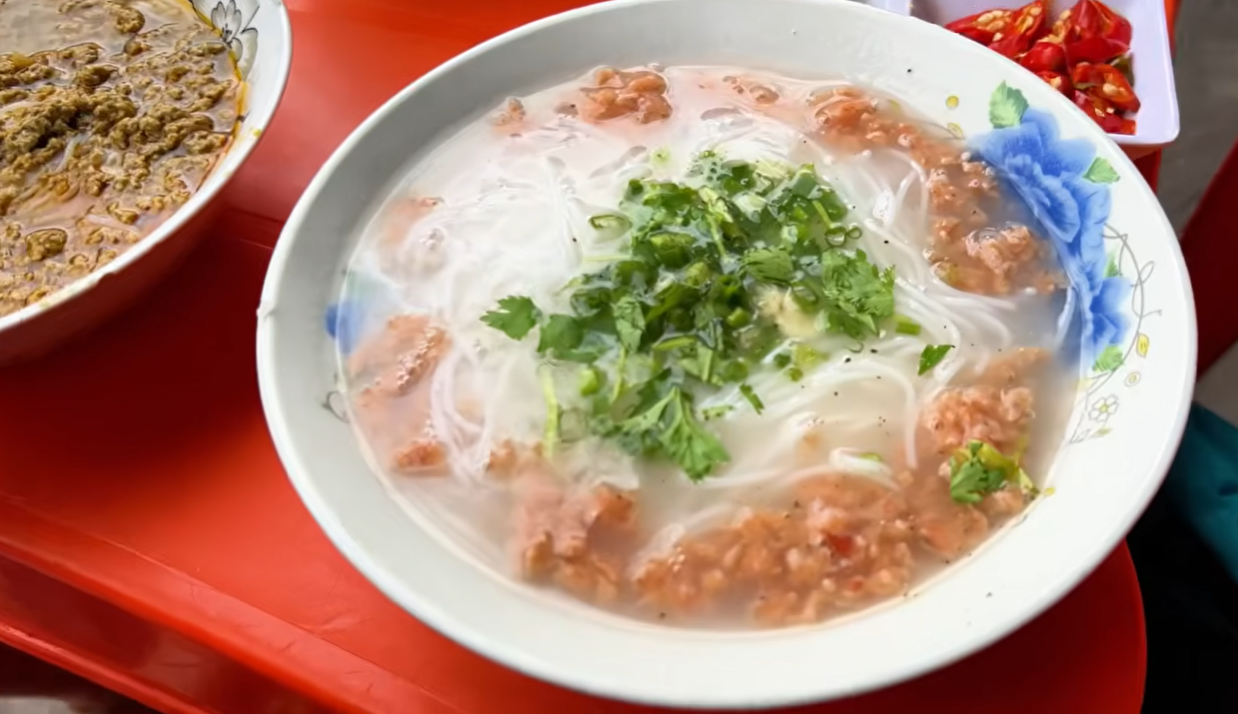 “Nước dùng khá giống cháo, còn thịt tôm có chút tiêu nên hơi cay. Theo cảm nhận riêng, mình thấy bún tôm ở đây có vị hơi nhạt”, anh nói.