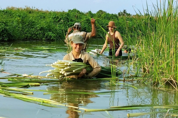 Du khách người Canada nếm thử trứng rán lá ngải, ăn không ngừng vì ngon