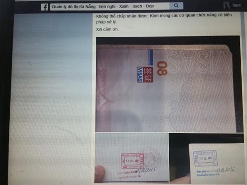 Trước đó, khoảng 3 ngày trở lại đây, cũng trên trang facebook Quản lý đô thị Đà Nẵng nhận được phản ánh về hiện tượng giấy thị thực nhập cảnh khách du lịch TQ xuất hiện hình "lưỡi bò" trên visa.