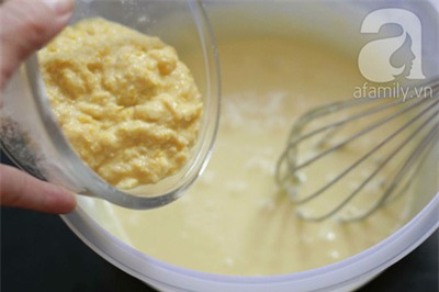 ![]() Trút phần ngô đã xay nhuyễn vào trộn chung. |