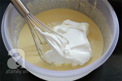![]() Cứ làm cho đến hết phần lòng trắng ta sẽ có một hỗn hợp bột bánh mịn và nhuyễn. |