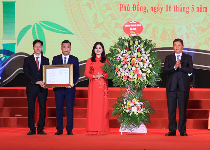 Phó Chủ tịch UBND Thành phố Nguyễn Mạnh Quyền trao Quyết định của UBND Thành phố công nhận “Điểm du lịch Phù Đổng”