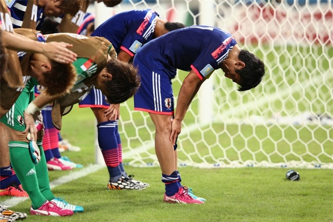 Hình ảnh các cầu thủ, ban huấn luyện Nhật Bản cúi đầu xin lỗi trước khán đài đầy ắp khán giả Nhật Bản đang thất vọng về kết quả khi Nhật Bản bị loại khỏi World Cup 2014 cũng thể hiện văn hóa của họ khi bước ra trường quốc tế.