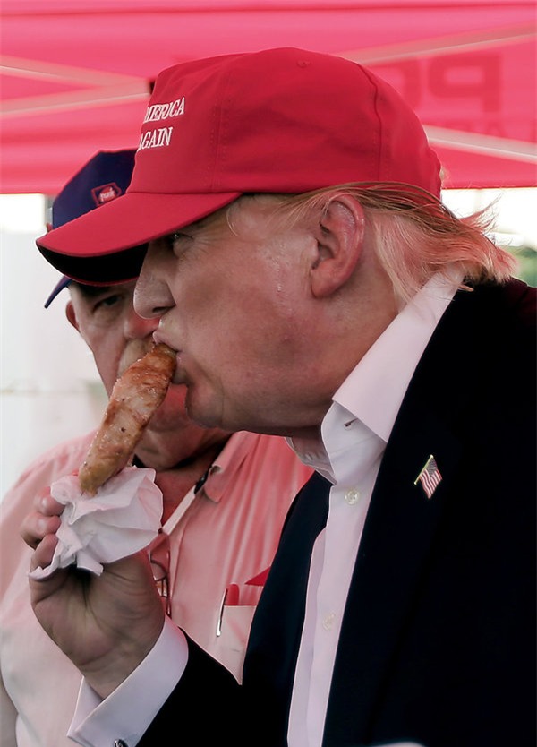 Mới gần đây, ông Trump thưởng thức món thịt lợn xiên que tại hội chợ