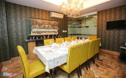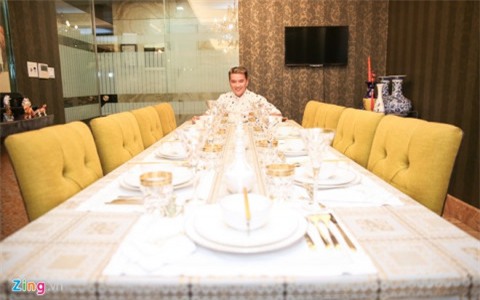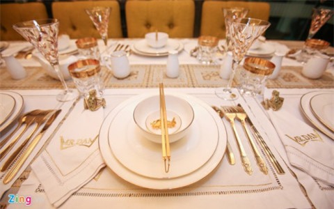 Phòng ăn xa hoa với chén đĩa mạ vàng.