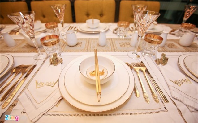 Phòng ăn xa hoa với chén đĩa mạ vàng.