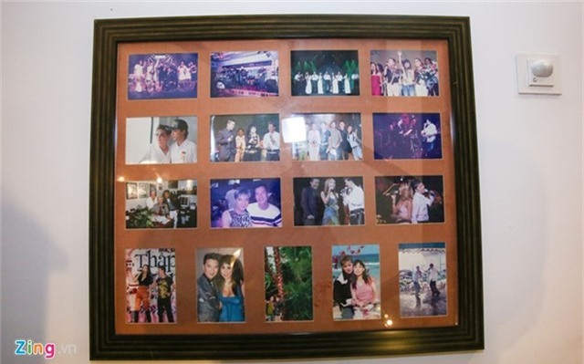 Những tấm hình chụp chung cùng bạn bè, đồng nghiệp khi đi chơi, đi diễn qua nhiều năm được Đàm Vĩnh Hưng xếp cẩn thận trong các khung hình gỗ treo dọc lối cầu thang. Ngay cả hình chụp với ca sĩ Phương Thanh – người có mâu thuẫn với anh cũng vẫn được giữ lại.