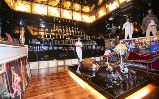 Mr. Đàm dành hẳn một phòng rộng ở lầu 2 để lưu giữ các giải thưởng âm nhạc, trang phục diễn độc đáo của mình.