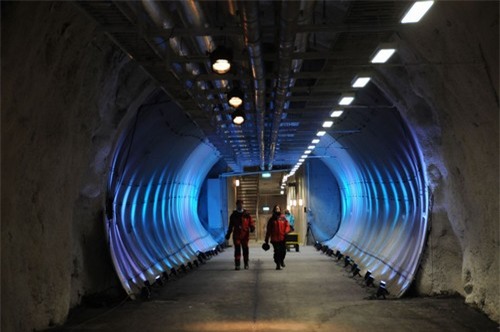Hầm được chôn sâu trong lòng đất, tại đúng nơi vòng cực bắc cắt ngang qua thuộc lãnh thổ của Na Uy. Ảnh: GCDT.
