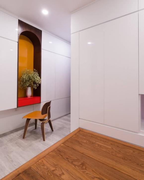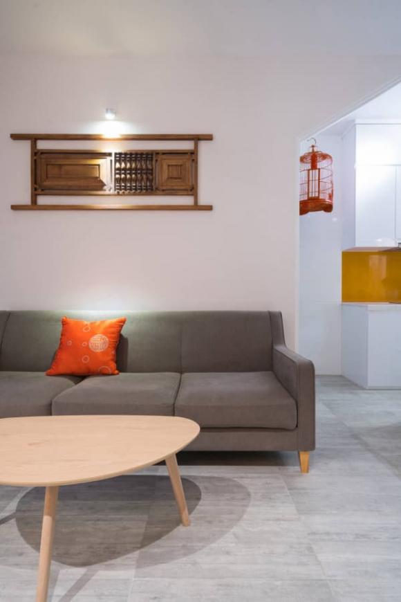 Trong nhà Ngọc Hân có thể thấy rõ những nét độc đáo, mang "hơi xưa" mà ít căn hộ cao cấp hiện nay có được như: gỗ mộc, cửa vòm, sơn mài, cửa gỗ, lồng chim...