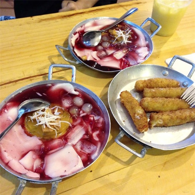 Tào phớ dâu tằm: Là món tào phớ được cách tân, mới xuất hiện gần đây, nhưng với 15.000 đồng, bạn có thể thưởng thức một chảo tào phớ thơm ngon, đầy đặn trên đường Trần Quốc Hoàn (Cầu Giấy, Hà Nội). Dâu tằm được hái ngay tại vườn, những lát tào phớ chan nước đường, thêm dừa tươi, thạch dừa, trân châu… tạo thành một món ăn ngon, mát, lạ miệng. Ảnh: Ann Lee.