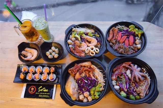 Mì cay Sasin 7 cấp độ đường Hồ Tùng Mậu: Trào lưu ăn mì cay Hàn Quốc để trải nghiệm cảm giác “cay xé lưỡi, cay toát mồ hôi” vẫn được nhiều bạn trẻ bình luận và lập nhóm đi ăn. Chỉ từ 39.000-79.000 đồng, bạn có thể nếm thử một tô mì có tôm, mực, nấm kim châm và rau cải thảo hấp dẫn. Nước mì đậm đà, sử dụng mì gói Hàn Quốc. Ảnh: Facebook quán.
