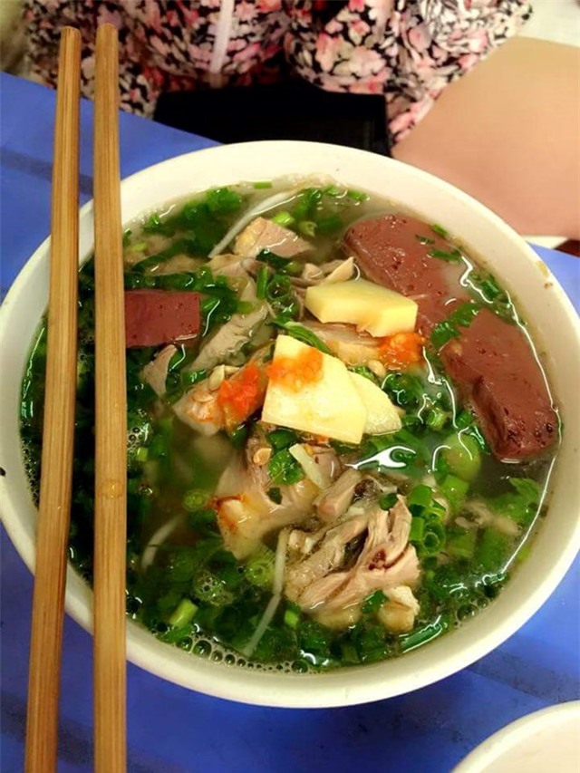 Một bát miến ngan đầy thịt có giá 30.000 đồng. Tiết ngan được trần sơ mềm, thịt ngan mềm, không nát. Đặc biệt, món măng do chủ quán tự làm có vị chua chua ngọt ngọt ăn kèm với ngan rất hợp. Ảnh: Facebook quán.