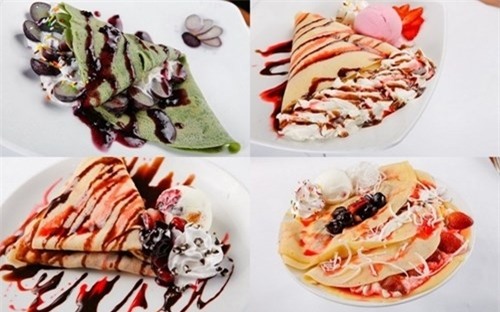 Bánh crepe từng “làm mưa làm gió” với giới trẻ cũng đã xuất hiện trong thực đơn ăn uống Xã Đàn từ lâu. Đến quán này, thực khách có lẽ sẽ bị “choáng ngợp” bởi các loại bánh crepe ở đây không chỉ được bày trí cực kích thích thị giác mà còn làm thoả mãn cả vị giác. Bánh được tráng mỏng, dai mềm, thơm mùi bột, mùi trà xanh hay sô cô la tuỳ vị. Phần nhân gồm kem tươi, kem lạnh đủ mùi, các loại trái cây tươi mọng và mứt quả vô cùng ngọt ngào.