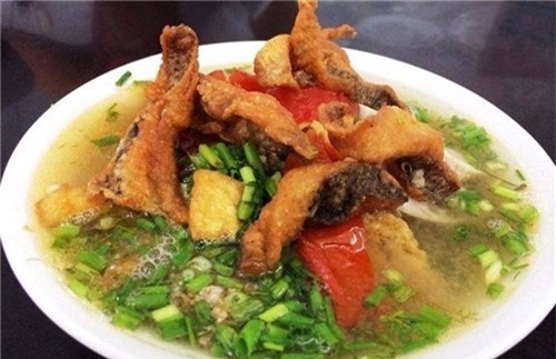 Cùng với bún sườn chua, bún cá cũng là một món mà nhất định bạn không thể bỏ sót khi ghé thăm khu phố ẩm thực Xã Đàn. Bát bún mang đậm hương vị của ẩm thực Hải Phòng đã được xuất hiện tại Hà Nộihơn 10 năm. Cá được dùng ở đây là cá rô phi tươi, được ướp gia vị và tẩm bột rán giòn. Miếng cá được thái to, dày, tẩm ướp, lăn qua lớp bột chiên mỏng tạo nên hương vị rất đậm đà. Sau đó từng miếng cá vàng ươm, giòn rụm được xếp lên trên cùng hành thái nhỏ, thì là trang trí vô cùng bắt mắt và đầy đặn.