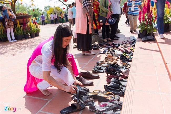 Một du khách đã tự sắp xếp giày dép của đám đông cho ngay ngắn khi