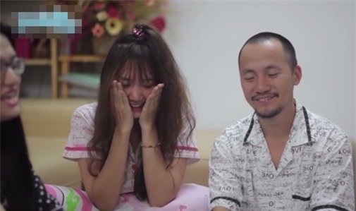 Có lẽ vì biết mình đã “nói hớ” về chuyện tế nhị nên Hari Won bèn ôm mặt cười rúc rích