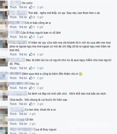 Khánh Thi cho biết cô vừa bị trộm đột nhập vào nhà lấy tiền và nữ trang. Khi biết được sự việc, nhiều người đã chia buồn và động viên tinh thần Khánh Thi.