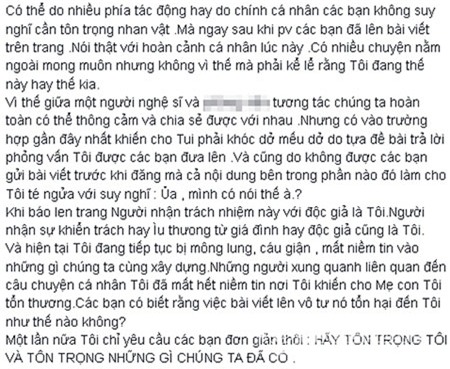 Thi viết một đoạn tâm thư khá dài trên facebook cá nhân. Trong tâm thư,