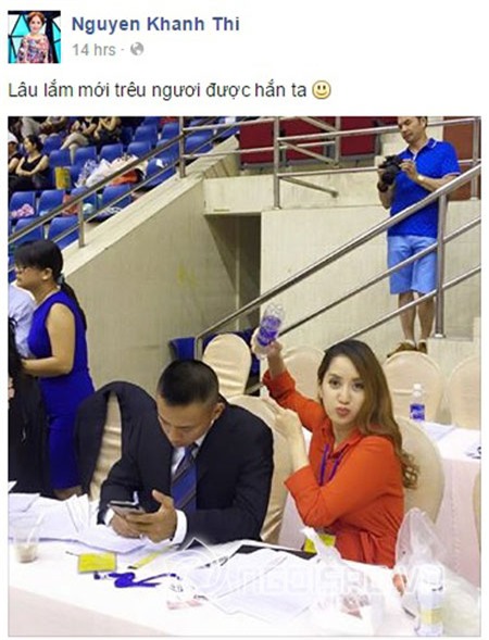 Khánh Thi vừa chia sẻ những hình ảnh tái hợp "tình cũ" Chí Anh khi cả hai cùng làm giám khảo một cuộc thi khiêu vũ. Bà bầu Khánh Thi tỏ ra vô cùng nhí nhảnh khi liên tục tạo dáng hài hước với Chí Anh và còn trêu chọc anh chàng: "Lâu lắm mới trêu ngươi được hắn ta". Kiện tướng dancesport cũng nhận rằng mình và các bạn giờ đều đã là ban giám khảo, nhưng vẫn tưng tửng như xưa vì ai cũng trẻ trung, không có nếp nhăn.