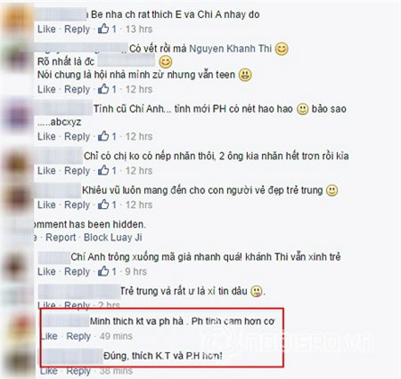 Nhìn những hình ảnh vui vẻ của Khánh Thi và Chí Anh nhiều người đã dành lời khen cho cặp đôi Khánh Thi - Chí Anh của ngày xưa. Tuy nhiên, đại đa số cho rằng cặp đôi hiện tại Khánh Thi - Phan Hiển vẫn đẹp đôi hơn và Phan Hiển tình cảm hơn.