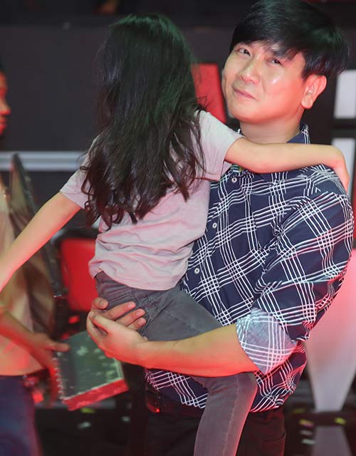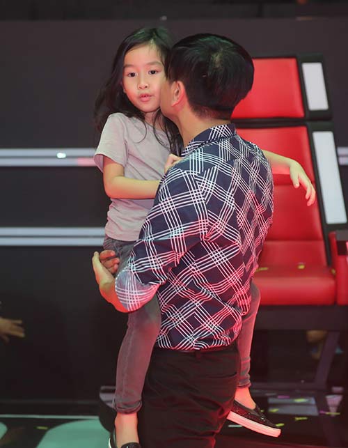 Hồ Hoài Anh cưng nựng con gái trong hậu trường chương trình The Voice Kids