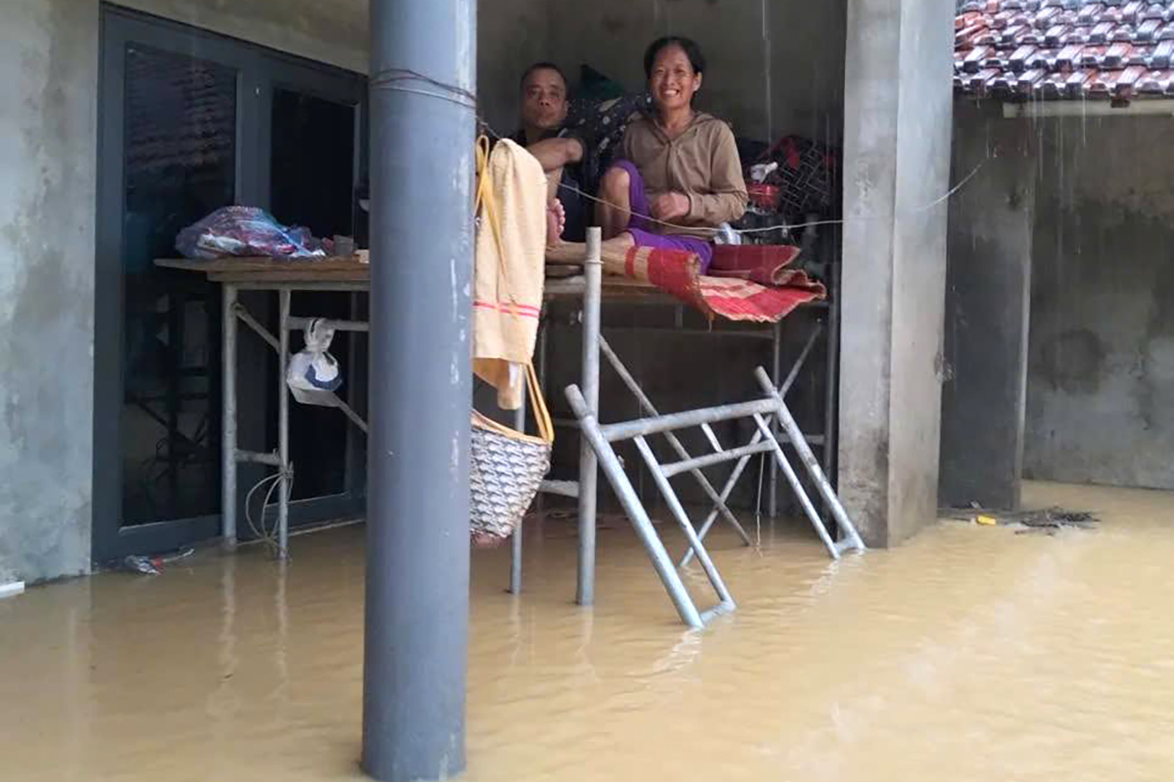 Theo bà Trang, sáng sớm nay lũ từ sông Trung đổ về rồi ngập khoảng hơn 1m vào khu dân cư, đến trưa cùng ngày thì nước tiếp tục dâng đến gần mái nhà của các hộ dân.