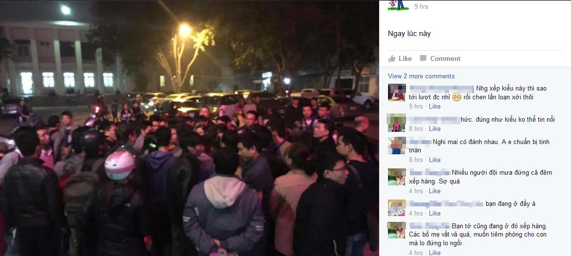 20 giờ. Cậu bạn post Fb là đang xếp hàng ở phòng tiêm 182 Lương Thế Vinh kèm theo khuyến cáo: ra nhanh may ra kịp. Hoá ra mai mới đến ngày trung tâm bắt đầu tiêm theo kế hoạch, nhưng mọi người đã đến "xí phần". Chết thật, quả này kế hoạch ra từ lúc tờ mờ sáng của mình chả ăn thua gì. Cậu bạn liên tục cập nhật "loạn lắm". Trung tâm đành ra thông báo không chấp nhận danh sách tự phát. 21 giờ 40, bạn bảo người ta vẫn đến đông nghịt. Dự là có người sẽ đứng thâu đêm...