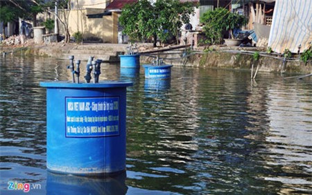 Để bơm được nước ao về sử dụng, anh Tuấn cũng như hàng trăm hộ dân trong thôn phải xây giếng và lắp máy bơm quanh bờ ao. Giếng nước có đường kính khoảng 1 m, đặt cách bờ khoảng 5-8 m và dựng rào chắn rác cẩn thận.