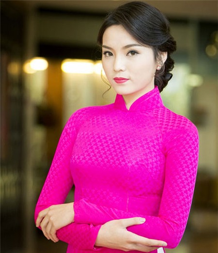 Chiếc áo dài hồng tím đã khiến hoa hậu 9X nổi bật và tỏa sáng