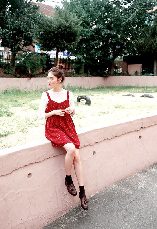 Màu đỏ quyến rũ đặc biệt trong những ngày rực rỡ của mùa hè, nhưng với mùa xuân, chúng cũng không tệ. Chiếc yếm đỏ chấm bi tinh nghịch phối cùng áo thum tinh nghịch là hot-trend ‘gây thương nhớ’ cho nhiều cô nàng trong mùa xuân hè 2017.