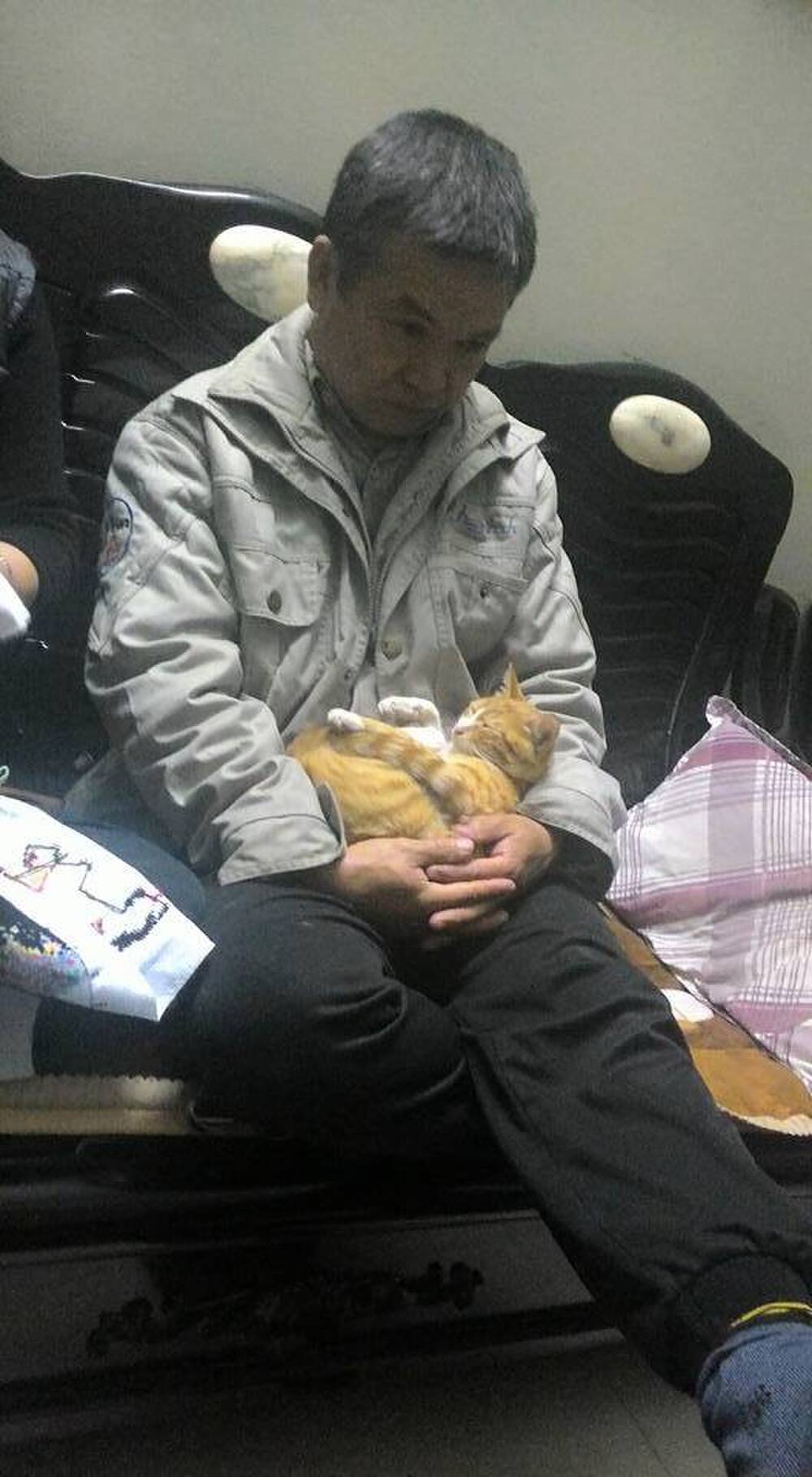 Trong ảnh là ông bố mặt khá nhẽ nhõm khi tìm ra được chú mèo và đàn con của nó. Mặc dù bụi cỏ có bẩn thế nào thì bố vẫn sẵn sàng bò chui vào và ẵm bồng từng bé mèo con vào giỏ. Tuy chưa kể đoạn sau những có lẽ, bố sẽ chăm sóc các chú mèo này chu đáo, cẩn thận từng tí một.