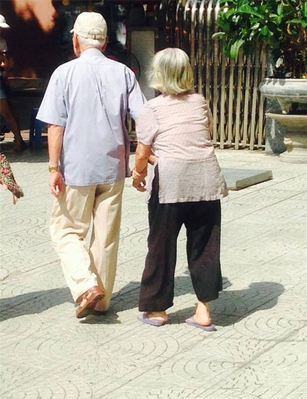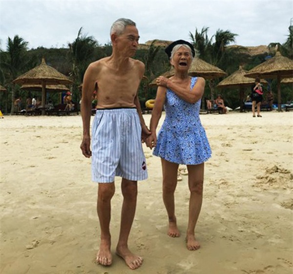Bức ảnh cụ ông Phạm Xuân Theo (85 tuổi) và cụ bà Vũ Thị Hảo (87 tuổi) nắm tay nhau tình cảm trên bãi biển TP Nha Trang từng là chủ đề 'nóng' trên mạng xã hội.