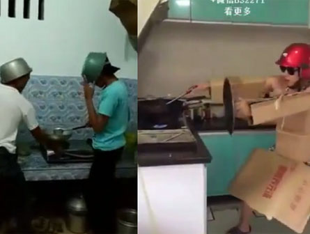 Chỉ là thả đồ ăn vào chảo đang ngập mỡ để chiên thôi mà các anh lại "rén" quá.