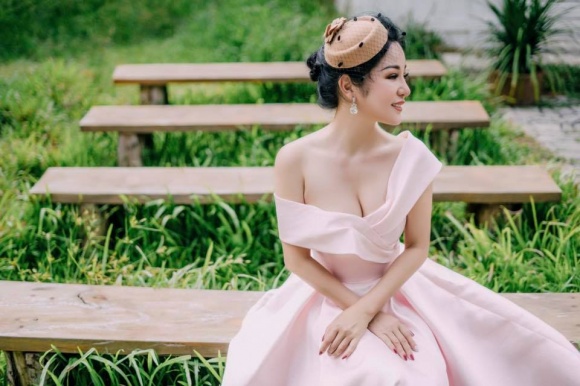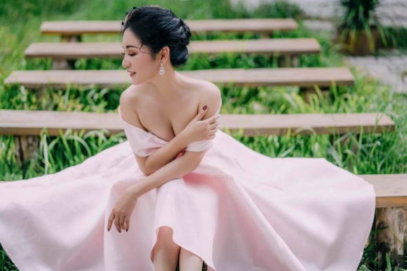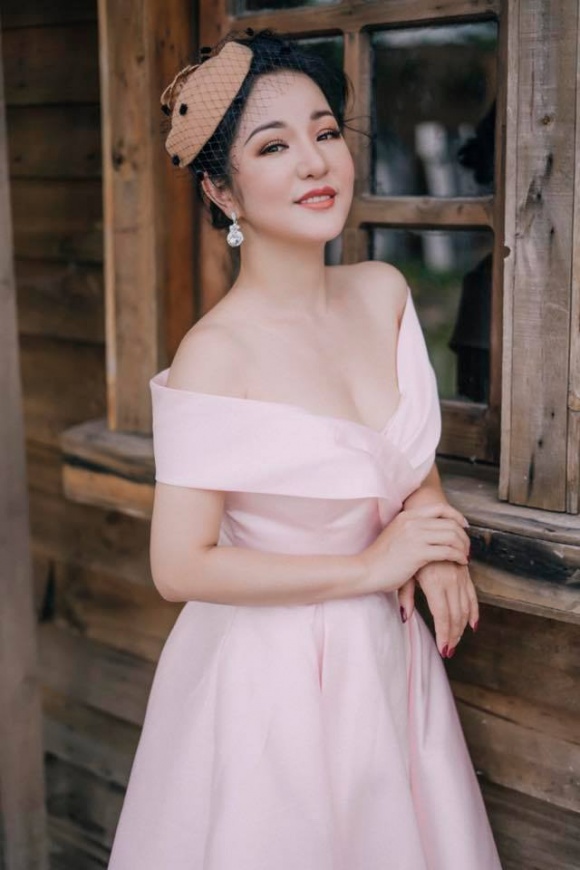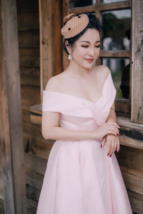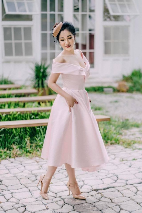 Diện đầm xòe hở vai, diễn viên hài Thúy Nga vô cùng quyến rũ, quý phái.