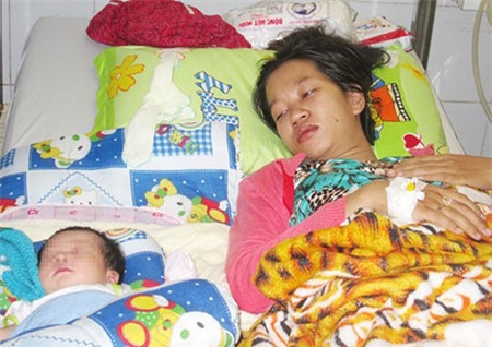 Mẹ con chi Ly đang điều trị tại bệnh viện. Ảnh: Nhật Tân. |