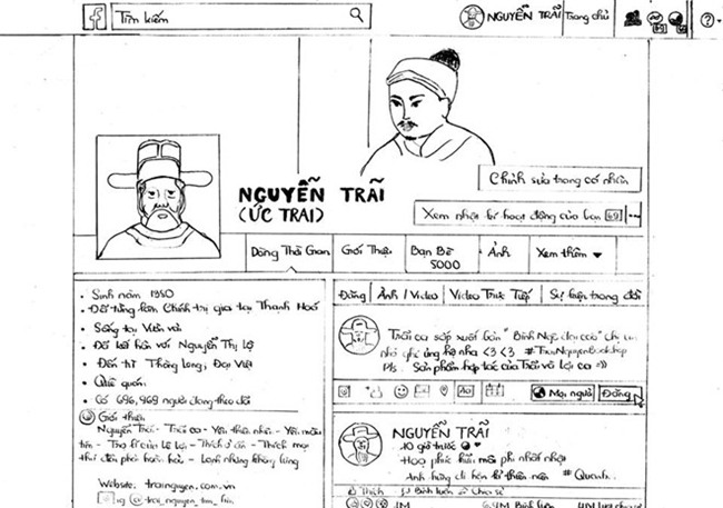 Đối với các bạn học sinh có lẽ trang cá nhân của Nguyễn Trãi sẽ nghiêm túc hơn. Nếu Nguyễn Trãi dùng Facebook, ông sẽ làm thơ, đăng lên trang cá nhân để bạn bè cùng nhận xét. Facebook có thể sẽ trở thành văn đàn, thi đàn nếu nó xuất hiện vào thời kỳ văn học trung đại.
