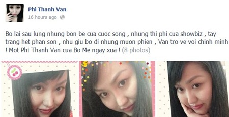 Đi qua "tâm bão", mới đây, cô bày tỏ sự mệt mỏi qua dòng chia sẻ: "Bỏ lại sau lưng những bộ bề của cuộc sống, những thị phi của showbiz, tẩy trang hết phấn son như giũ bỏ đi những muộn phiền, vẫn trở về với chính mình. Một Phi Thanh Vân của bố mẹ ngày xưa".