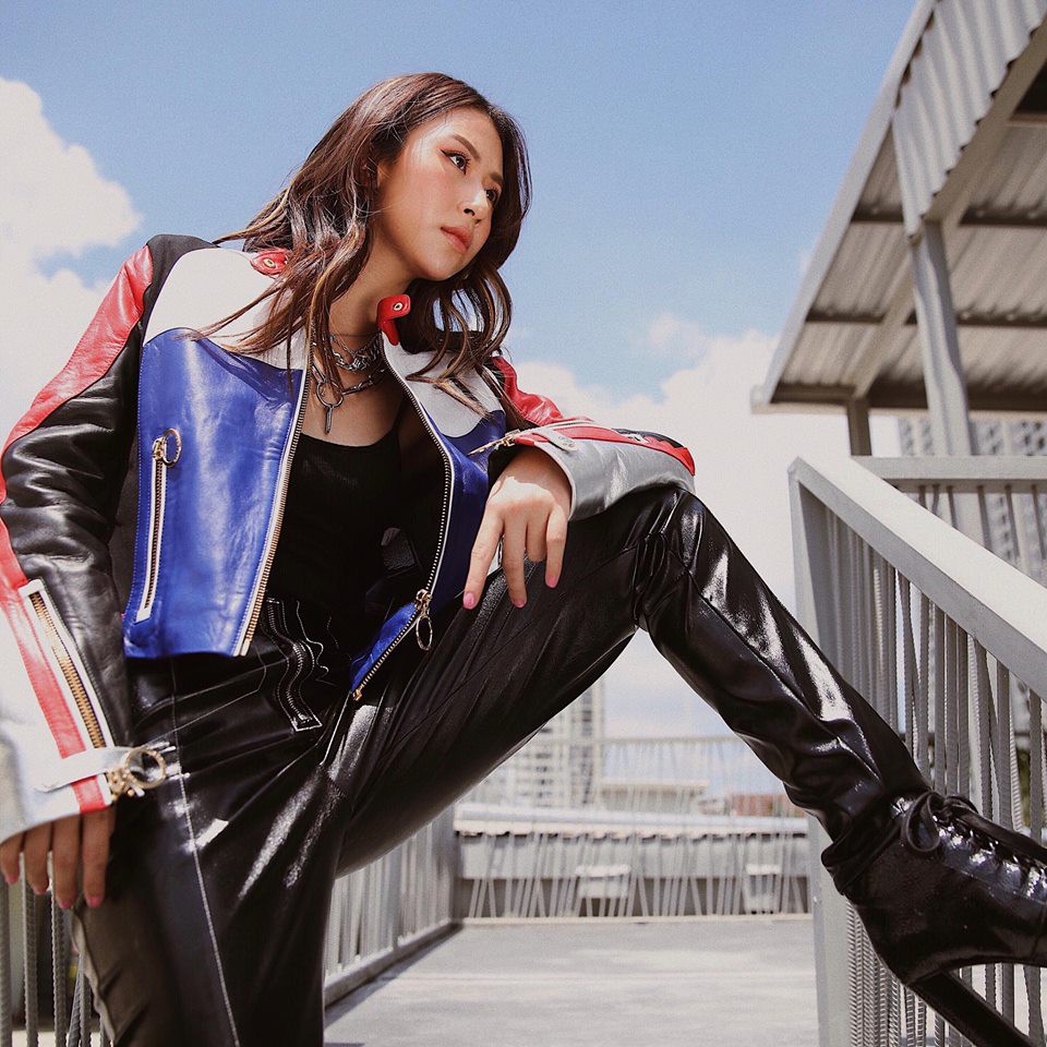 Thật sự phải nể Quỳnh Anh Shyn khi đã đủ can đảm diện từ-đầu-đến-chân cả bộ cánh bằng chất liệu da ngột ngạt trong cái nóng xấp xỉ 40 độ hiện nay.