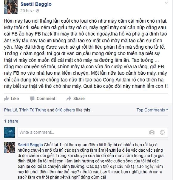 Kèm theo đoạn chia sẻ khá dài, Baggio gây choáng khi tung hình ảnh là những cuộc nói chuyện gián tiếp tố Andrea hút chích, đập đá, chuyện vay tiền rồi trốn nợ... Và cuối cùng, anh muốn người "phá rối gia can nhà người khác" dừng mọi chuyện tại đây.