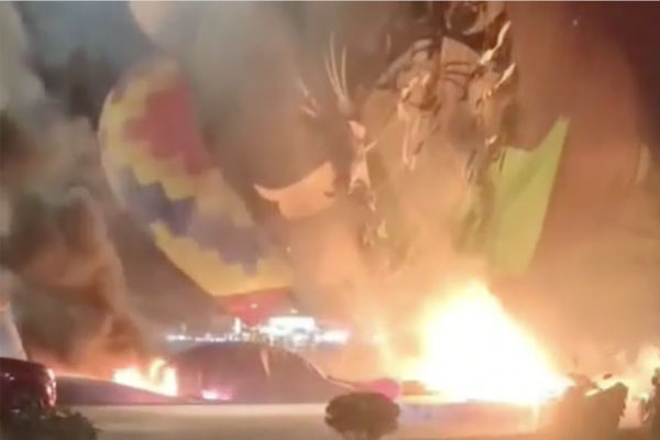 Theo đoạn video trên mạng xã hội, chiếc khinh khí cầu có kích thước lớn bốc cháy dữ dội tại quảng trường, một số người dùng bình chữa cháy nhỏ để dập lửa nhưng không thành công. Bất ngờ, ít nhất 2 tiếng nổ lớn phát ra kèm khói đen bốc lên khiến nhiều người chứng kiến hoảng sợ bỏ chạy.
