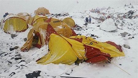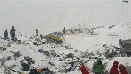 Hiện trường vụ lở tuyết ở đỉnh núi Everest. Ảnh Daily Mail |