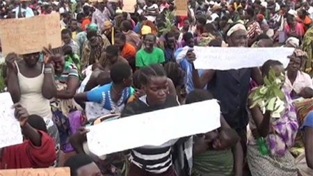 Dân làng Apaa biểu tình phản đối chính quyền địa phương trong một vụ tranh chấp đất đai. Ảnh: BBC |