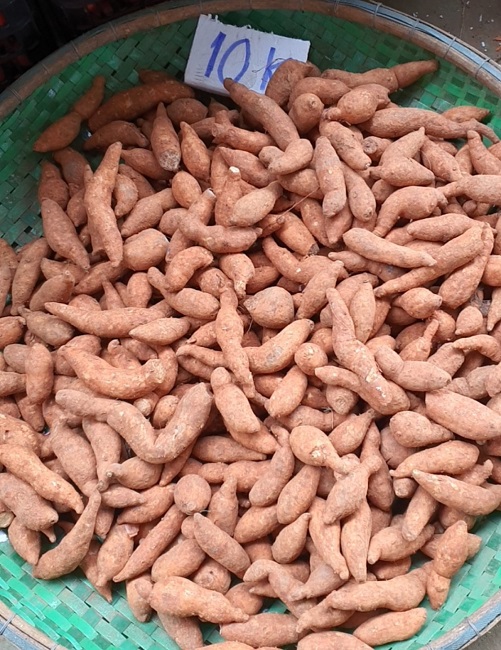 Khoai lang với đủ chủng loại được bày bán ngoài chợ.