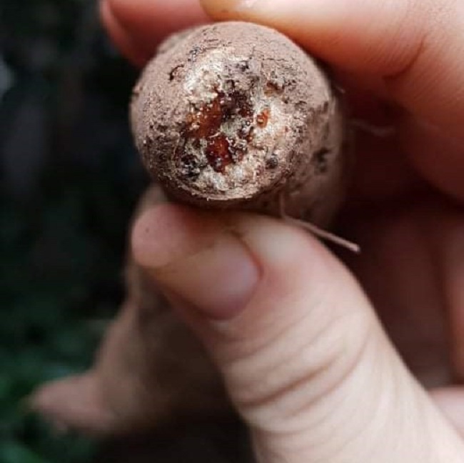 Nếu để lâu, khoai lang mật Đà Lạt có mật kết lại thành màu đen ở đầu củ - Ảnh: Huyền Trang.