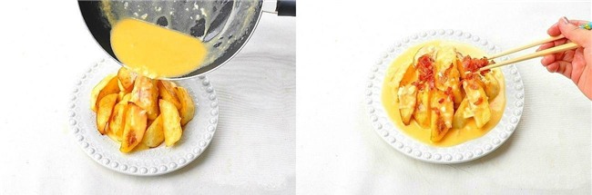 với món khoai tây chiên sốt phô mai này nhé! Khi ăn miếng khoai mềm ngon