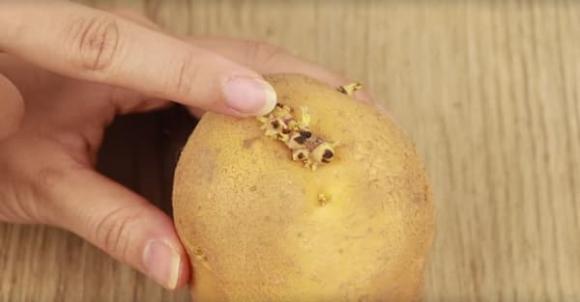 Thứ ba, vì khoai tây đã nảy mầm nên có thể trồng được. Chúng ta lấy củ khoai tây đã mọc mầm, chuẩn bị một cái chậu có đất, trồng trực tiếp vào đất. Chú ý phần mầm hướng lên trên. Trồng xong đem ra ban công để cây từ từ lớn lên cực đẹp. Bằng cách này, bạn có thể sử dụng chúng làm cây cảnh trong nhà, tiết kiệm được khá tiền lại còn tiện lợi.