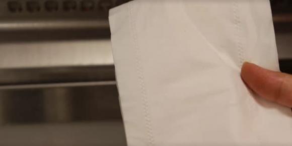 Tiếp theo chúng ta dùng giẻ lau lại là sẽ sạch, hết dầu mỡ. So sánh hiệu quả trước và sau khi lau thật sự rất rõ ràng, chúng ta cũng có thể kiểm tra bằng khăn giấy, các bạn sẽ thấy không có vết dầu khi lau bằng khăn giấy. Với cách này, bạn có thể tiết kiệm được tiền mua chất tẩy rửa tại nhà.