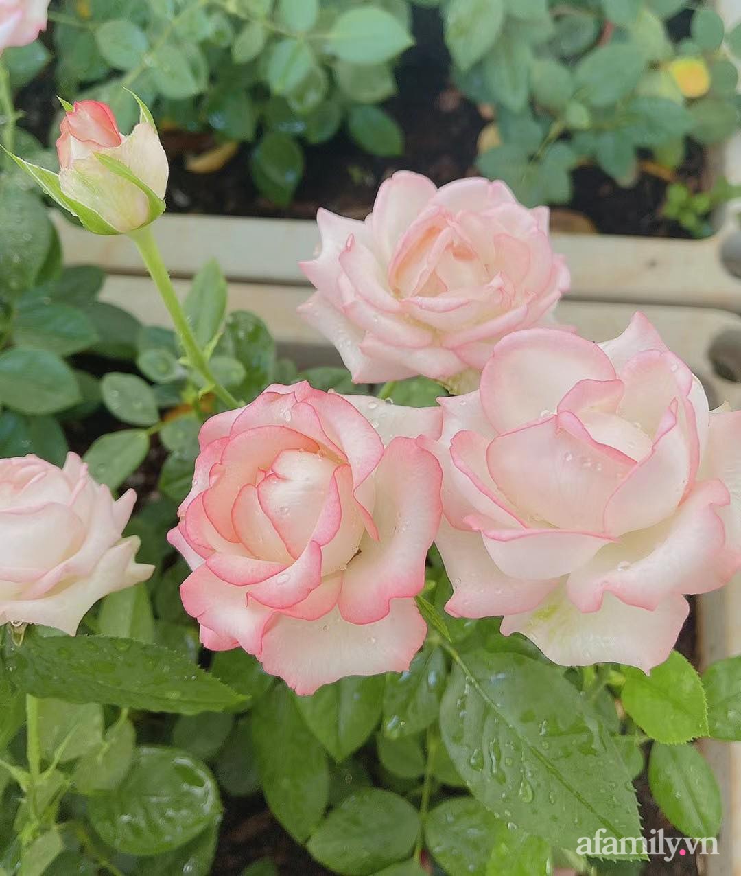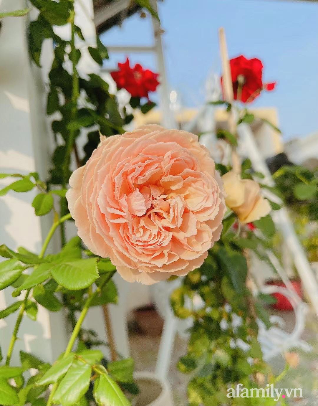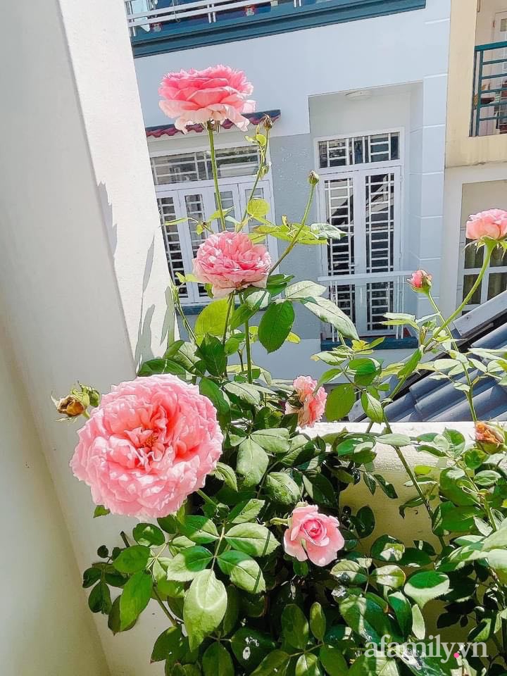 Những bông hồng khoe sắc tỏa hương trên sân thượng tạo vẻ đẹp vô cùng ấn tượng.