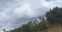 Theo bà Ngọc, khoảng 6h ngày 18/10, mưa lớn kéo dài khiến tuyến đường số 4, đoạn trước nhà xe tòa nhà E1 và E2, biến thành dòng chảy xiết. Nước từ trên núi đổ về cuồn cuộn, tràn qua mặt đường, tạo thành một dòng lũ hung dữ.